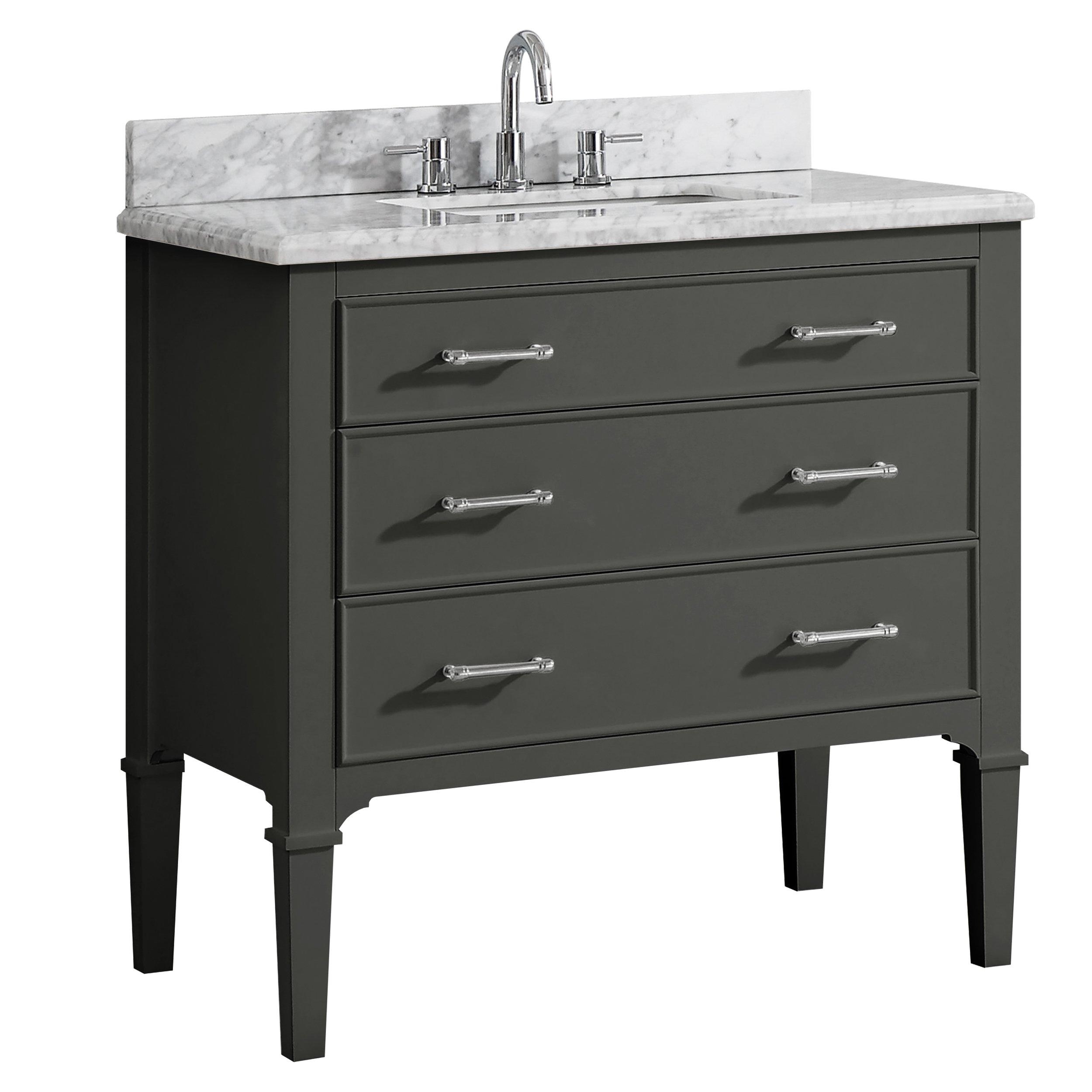 Arlington Dark Gray 37 in. Vanity with Marble Top Floor and Decor